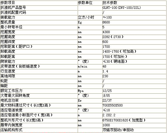 履帶扒渣機GLWT-100(ZWY-100/22L)技術參數(shù):